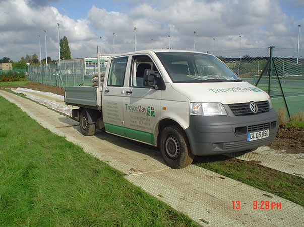 Ahh, if only they'd put TrakMat® down BEFORE driving over this lawn. But at least TrakMat® can get them back OUT!